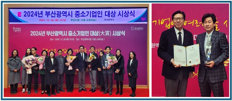 2024년 부산광역시 중소기업인 대상 수상 페이지 정보 작성일 24-12-30 15:45 목록 본문 2024.12.26 " 2024년 부산광역시 중소기업인 대상 " 수상 이전글이웃돕기 성품 전달 25.01.10 다음글KOGAS 일자리우수기업 선정 24.12.20